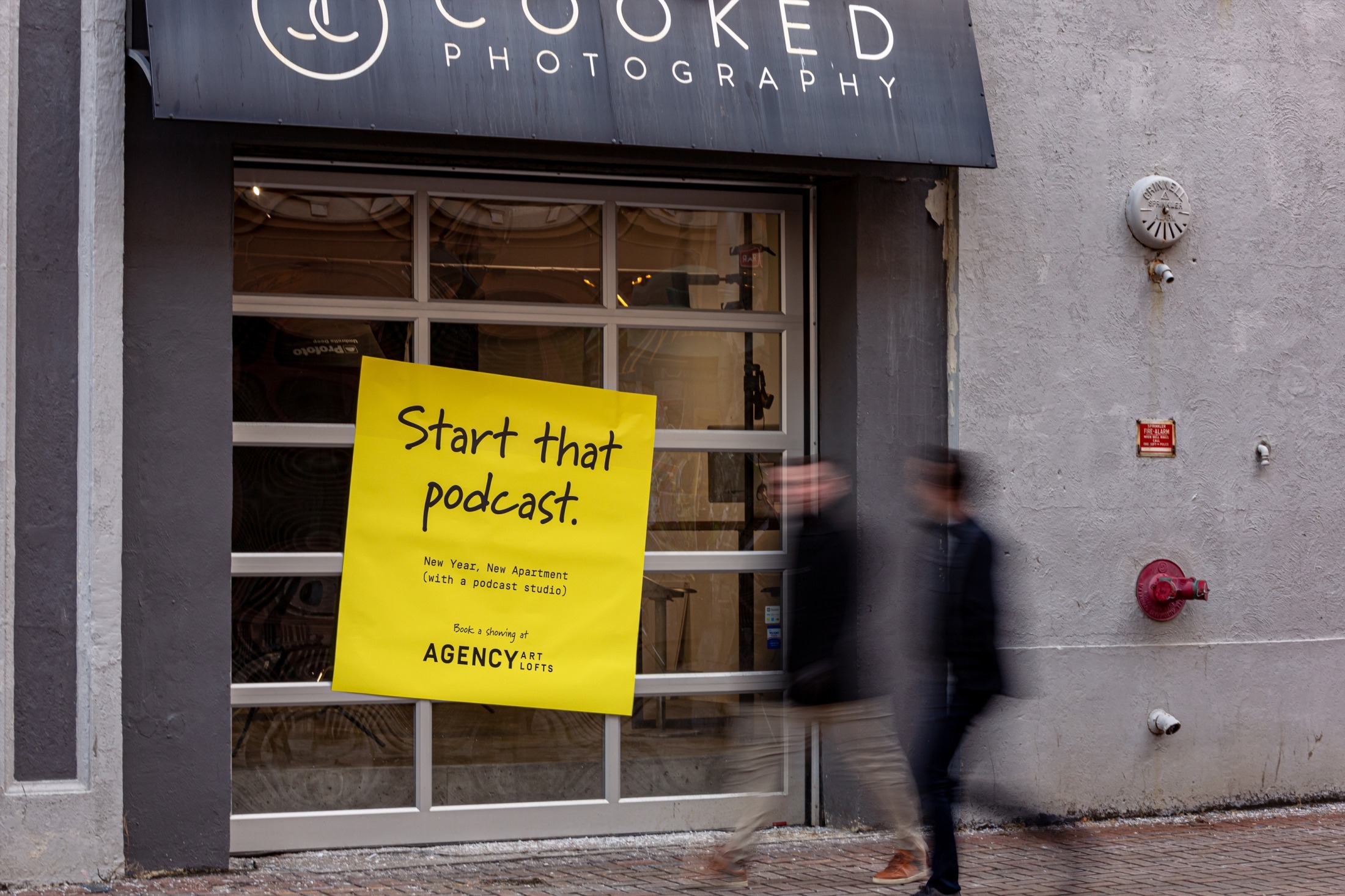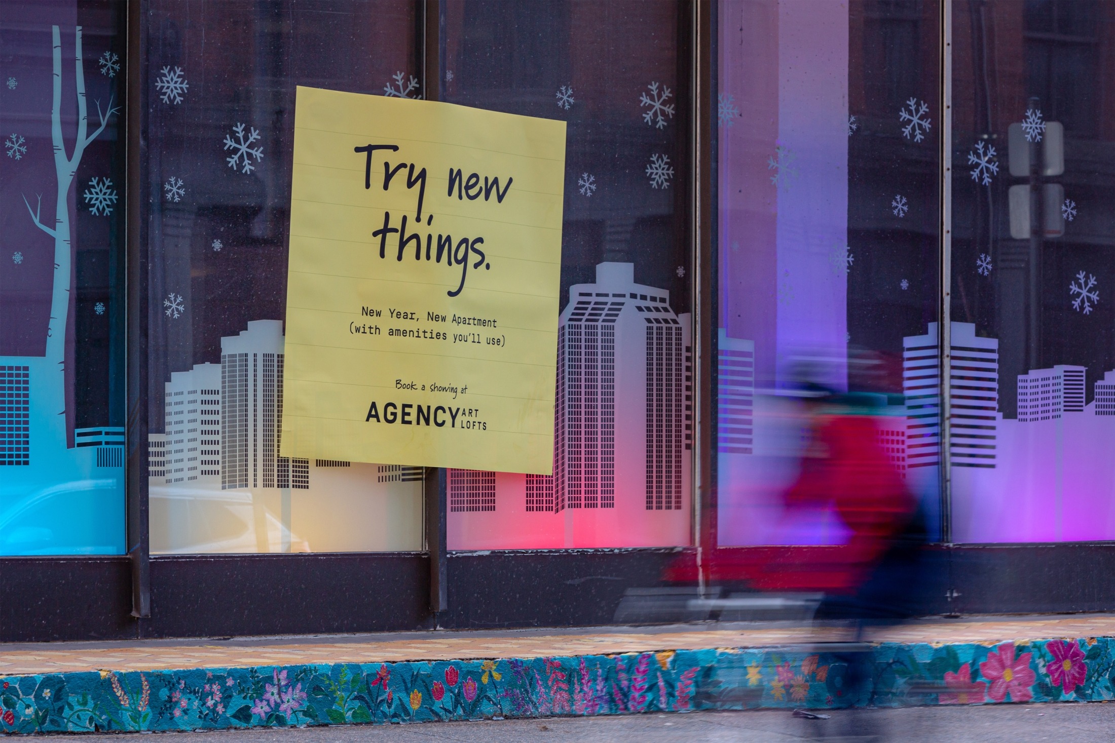 We’re all guilty of making big ambitious New Year’s goals, only to quietly quit them by February. But this year, Agency Art Lofts wants to help you stick with it. So we covered the city in giant New Year’s Resolutions, each one highlighting their extremely unique suite of creative amenities that could set anyone up for success. From a fully-equipped Podcast Studio to a private Sauna, and even a secret Speakeasy to host your friends, the list goes on. New Year, New Apartment.
